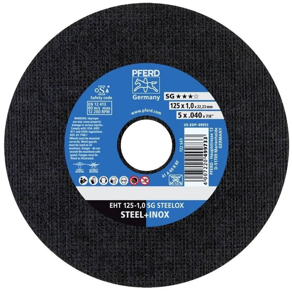 Disc de tăiere EHT 125×1,0x22,23 mm plat Performance Line SG STEELOX pentru oțel/oțel inoxidabil