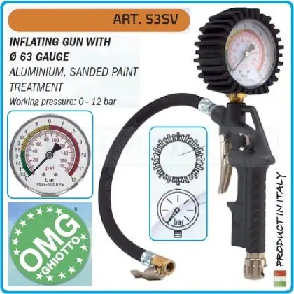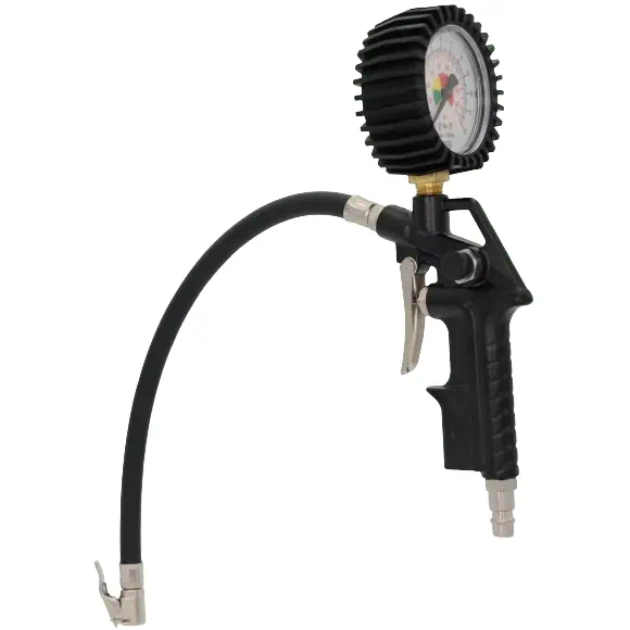 Pistol pentru umflarea anvelopelor, cu manometru.